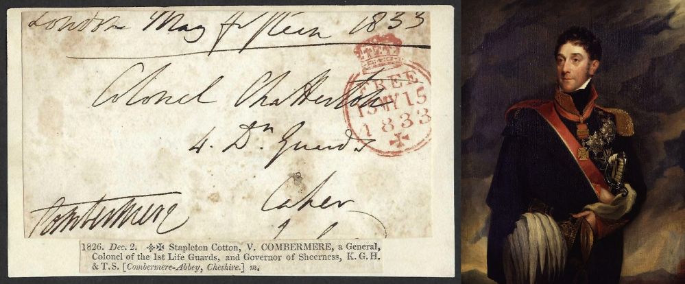 1833 Free front signed by Stapleton Cotton, 1st Viscount Combermere