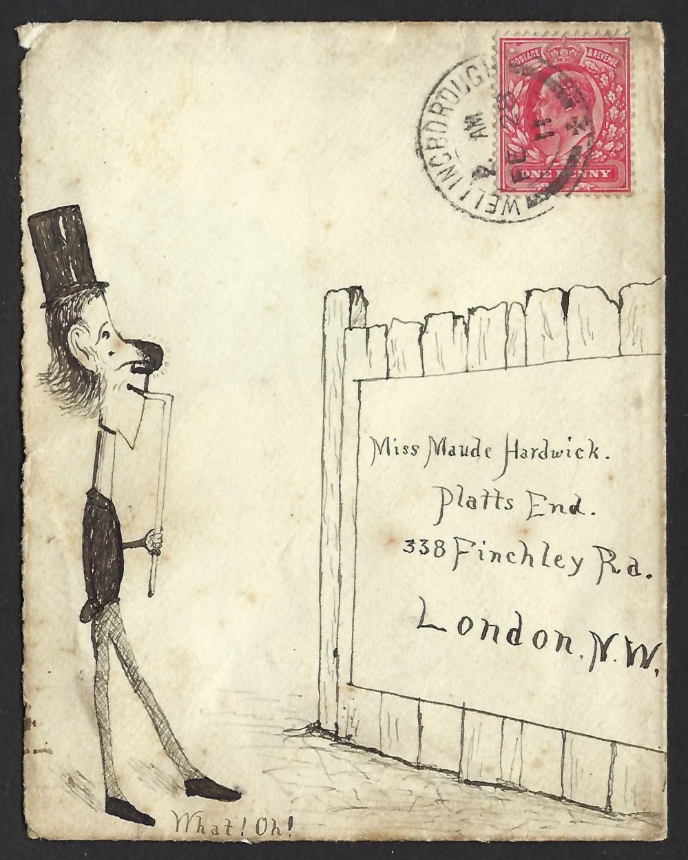 KEVII 1911 hand illustrated cover Wellingborough to London