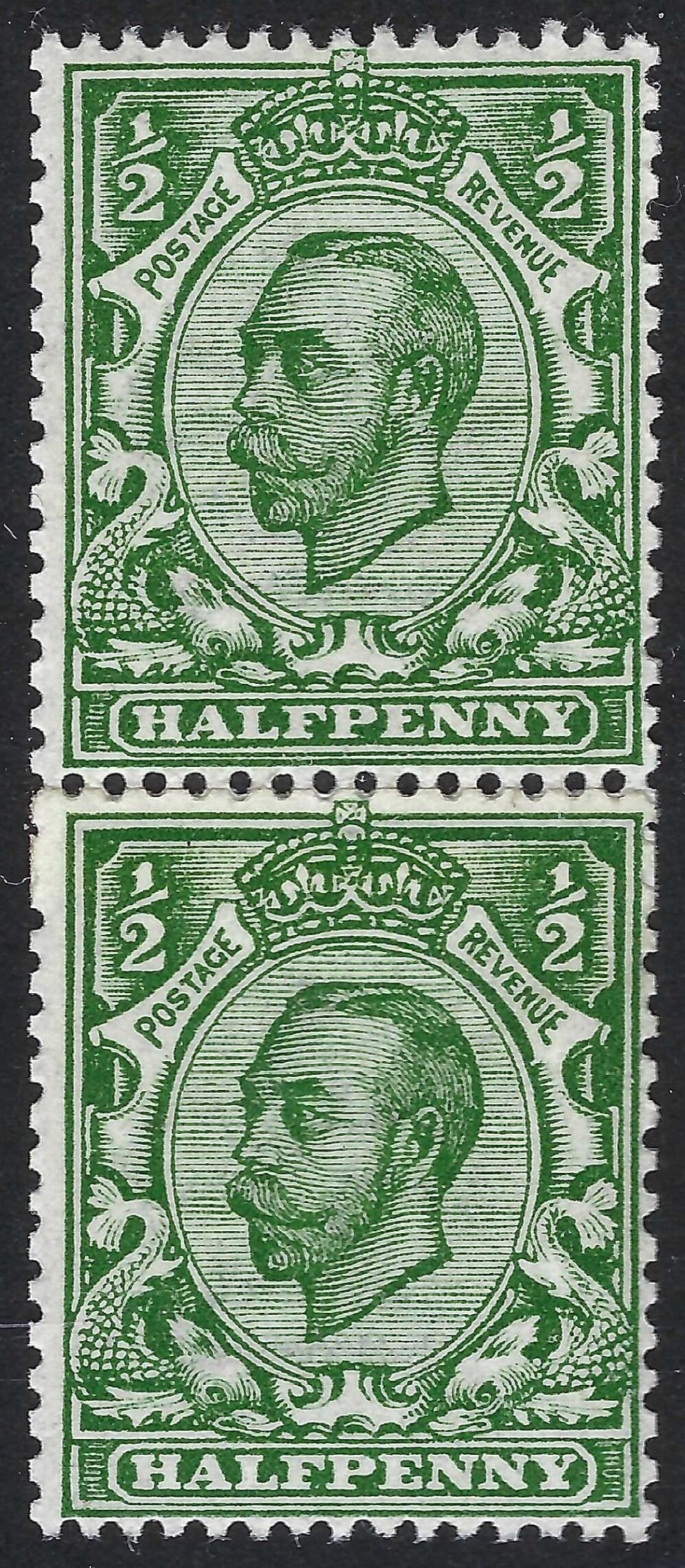 KGV sg338/40 Spec N4g (coil join) ½d green vertical pair – unmounted mint