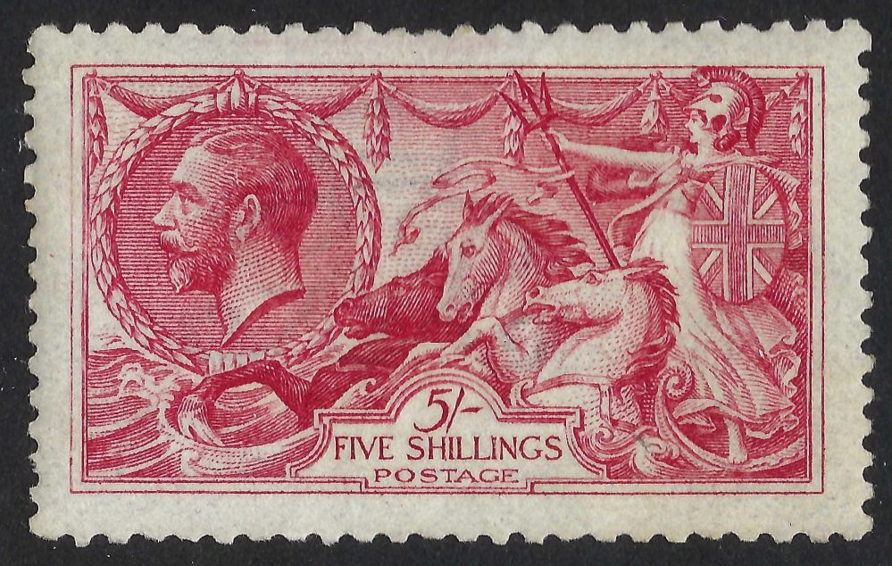 KGV sg409 5s De la Rue bright carmine seahorse – mounted mint