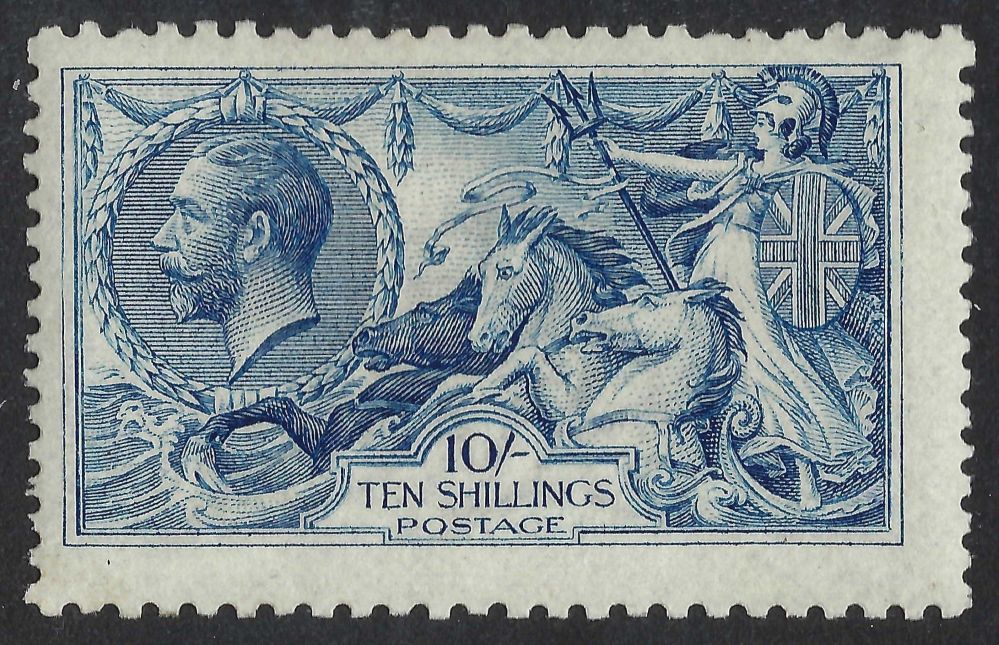 KGV sg411 10s De La Rue deep blue seahorse – mounted mint