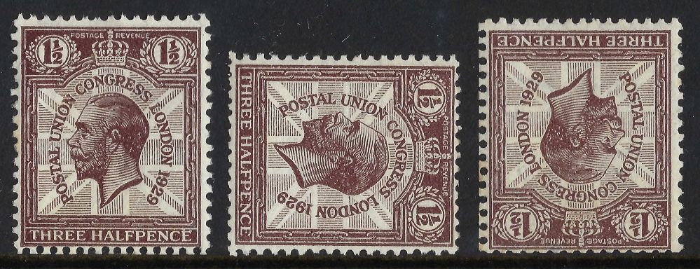 KGV sg436 sg436a sg436wi 1½d purple-brown set – mounted mint