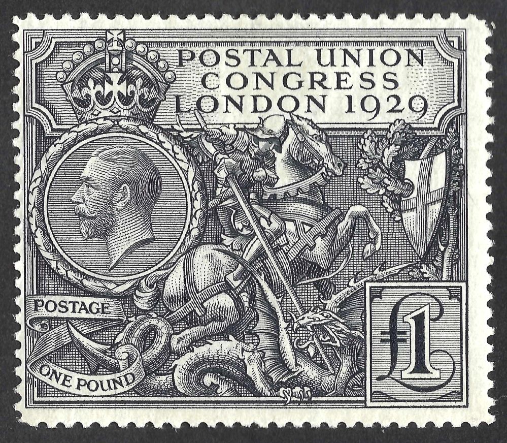 KGV sg438 £1 black PUC – fine mounted mint