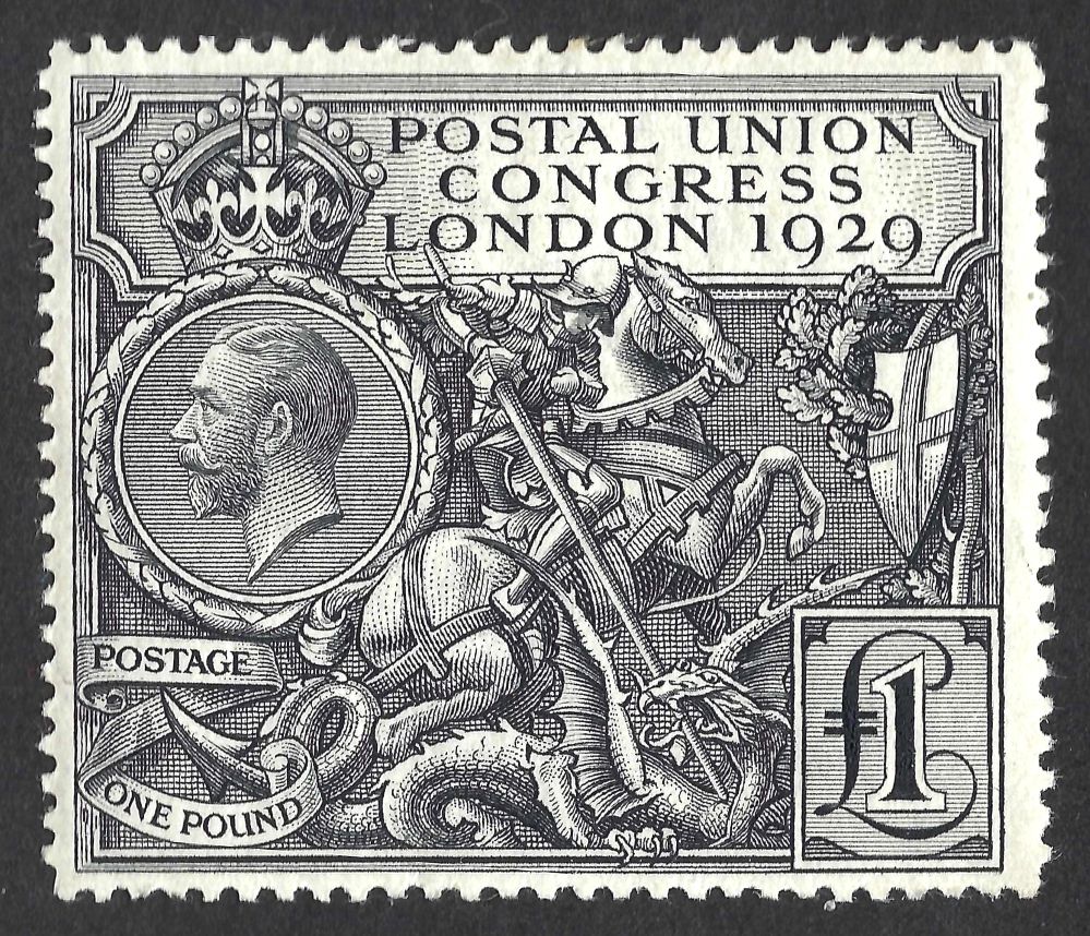 KGV sg438 £1 black PUC – fine mounted mint