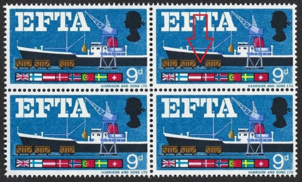 QEII 1967 sg715 Spec W111(h) “Quay flaw” variety in block – unmounted mint