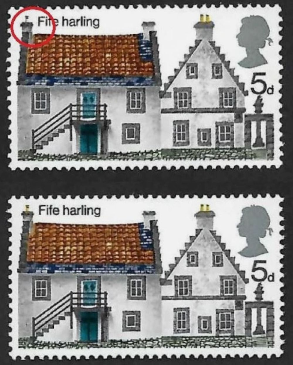 QEII 1970 sg815g – lemon ommited from left chimney
