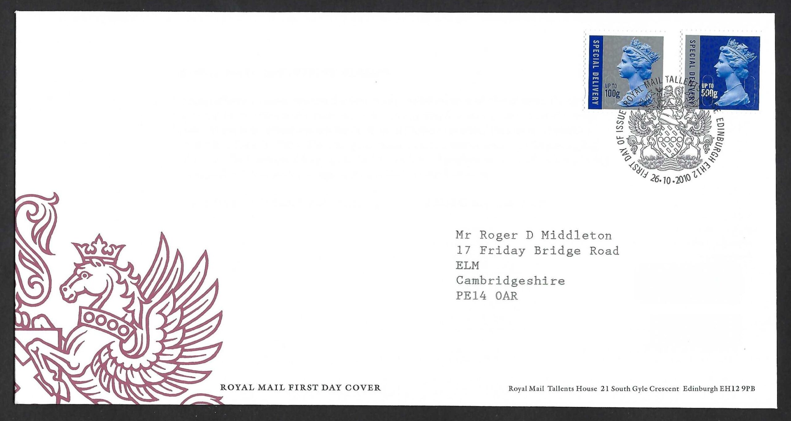 QEII 26-10-2010 sgU3051/52 Special Delivery First Day Cover