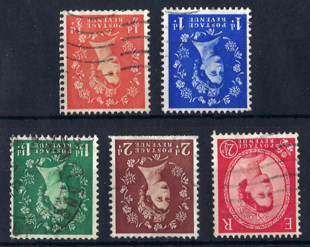 QEII sg515wi-519wi Tudor Crown (wmk inverted) – good used