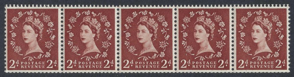 QEII sg543bd St Edward`s Crown 2d light red-brown strip (wmk sideways) – unmounted mint