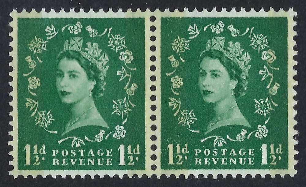 QEII sg601 1½d green Phosphor-Graphite pair – unmounted mint
