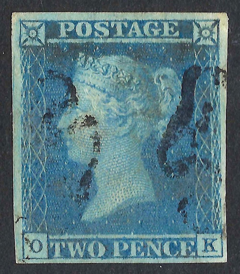 QV sg14 2d blue (0-K) plate 3 with double strike of maltese cross