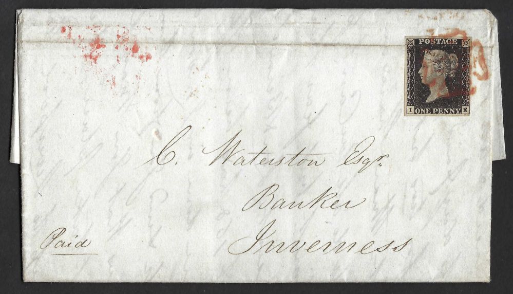 QV sg2 1d black (I-E) Plate 7 (minor filing crease) on 1840 entire from Liverpool to Inverness