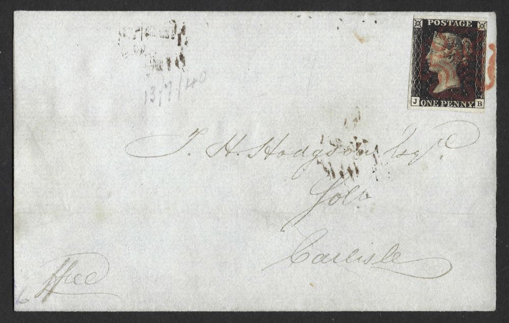QV sg2 1d black (J-B) Plate 6 on 1840 part wrapper to Carlisle