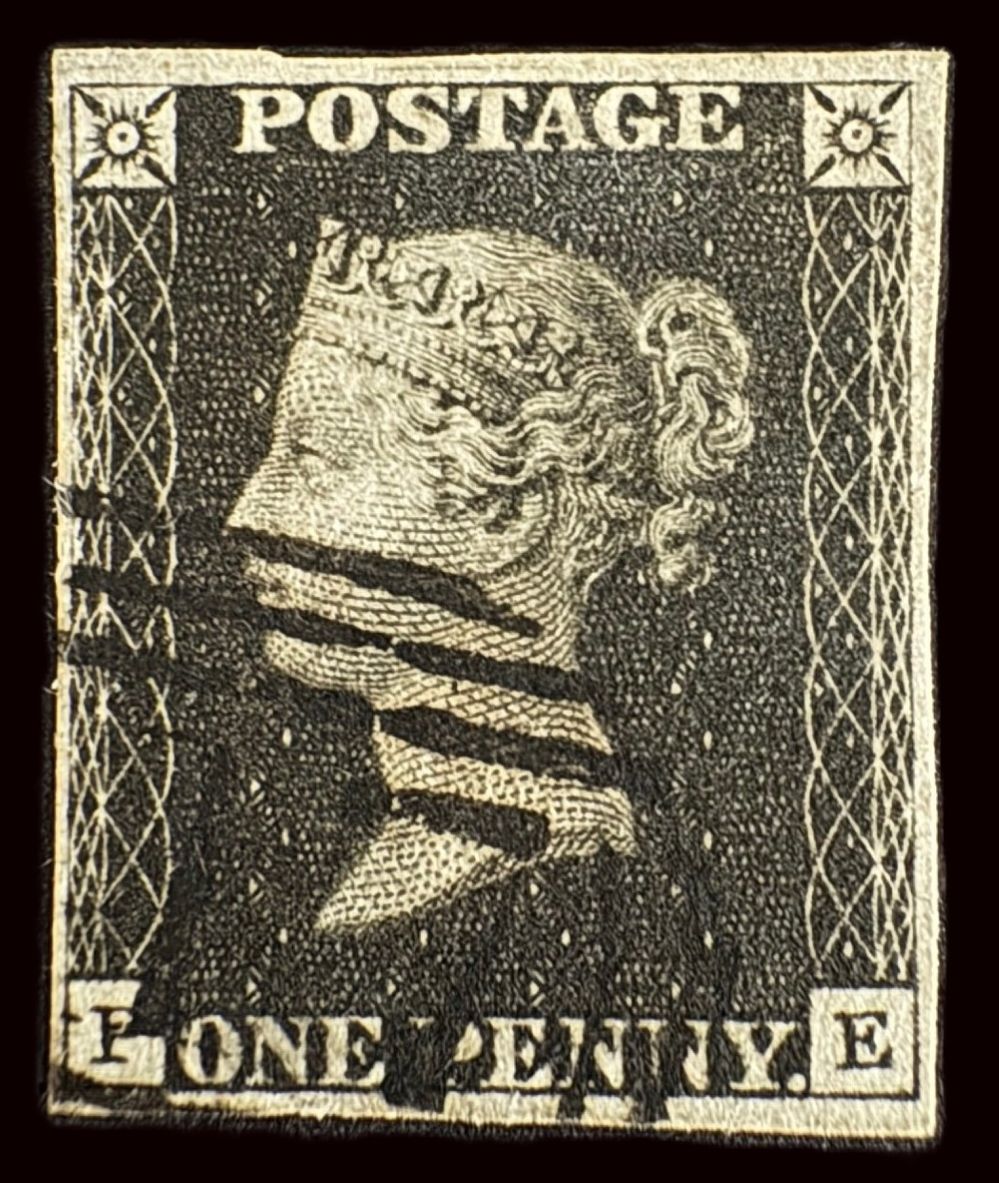 QV sg2 1d black (P-E) Plate 5 with good to large margins neatly cancelled by part 1844 type numeral in black with RPS certificate