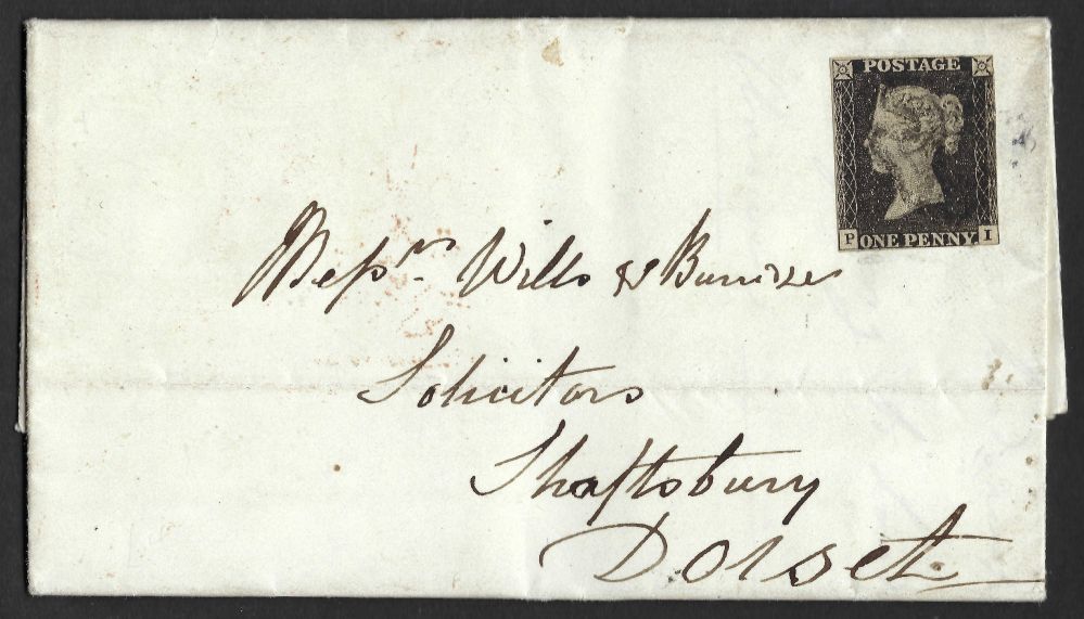 QV sg2 1d black (P-I) Plate 4 on 1842 EL Kingsdown to Shaftesbury
