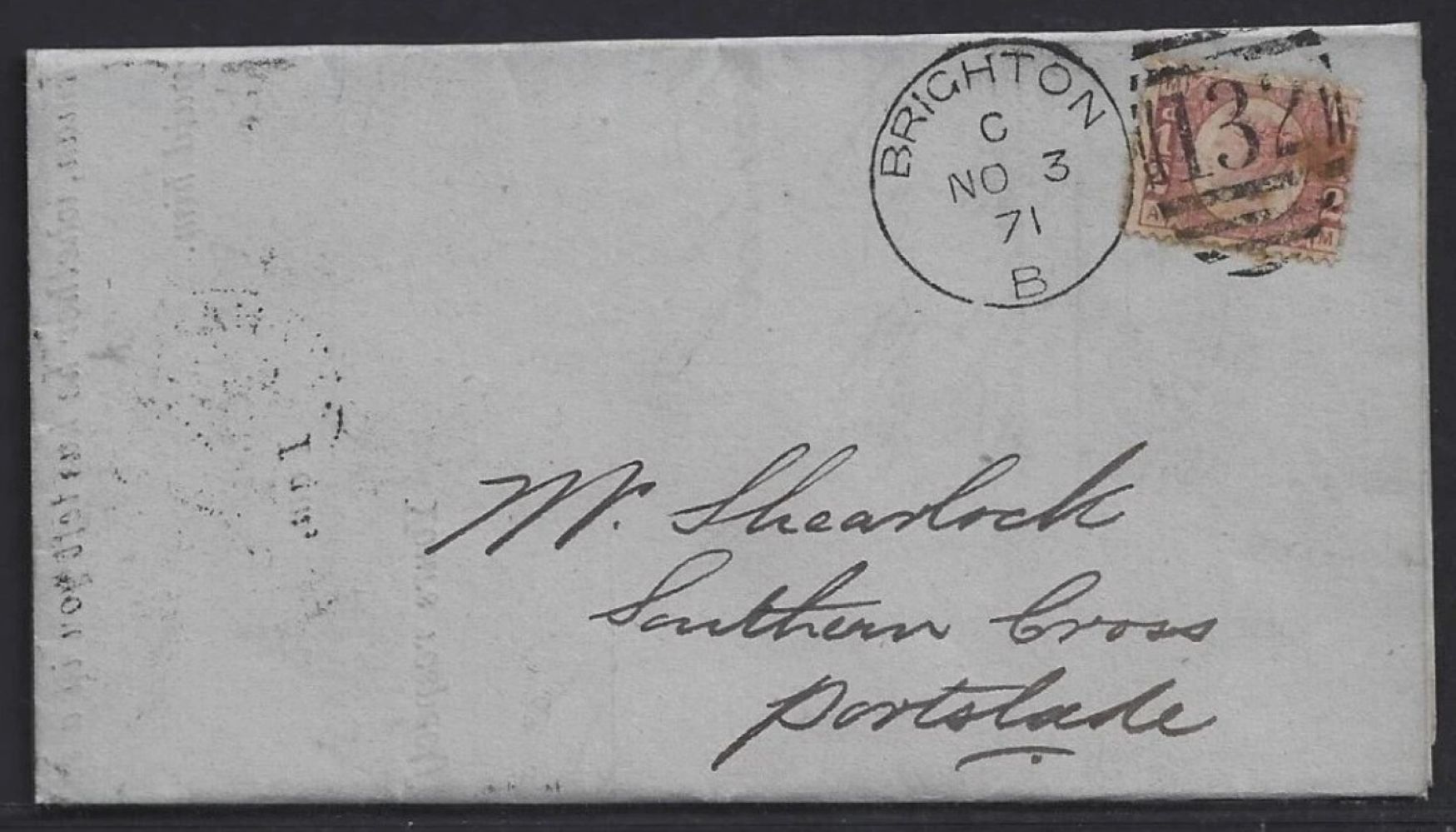 QV sg49 ½d rose (A-M) plate 3 on 1871 cover